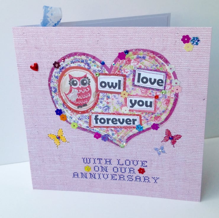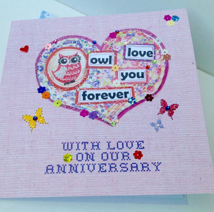 It features a fun and colourful appliqué, printed design, but it is Handfinished with a range of embellishments, including crystals, glitter paint and sequins.
