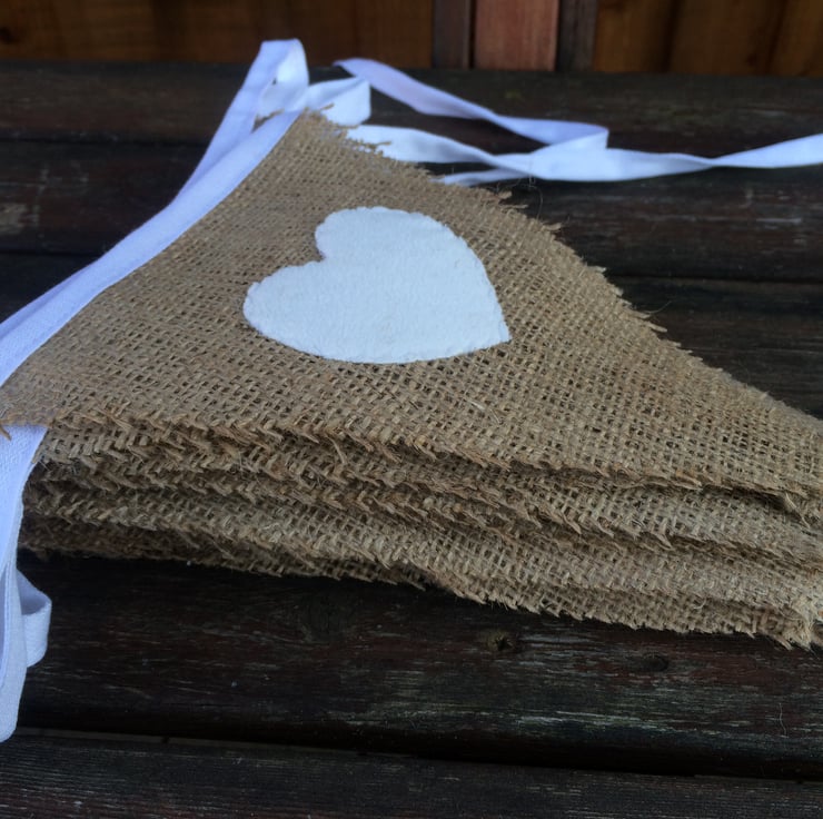 Price is for one metre of Hessian heart Bunting