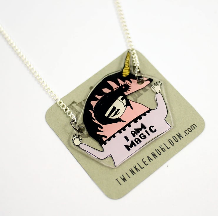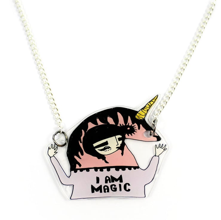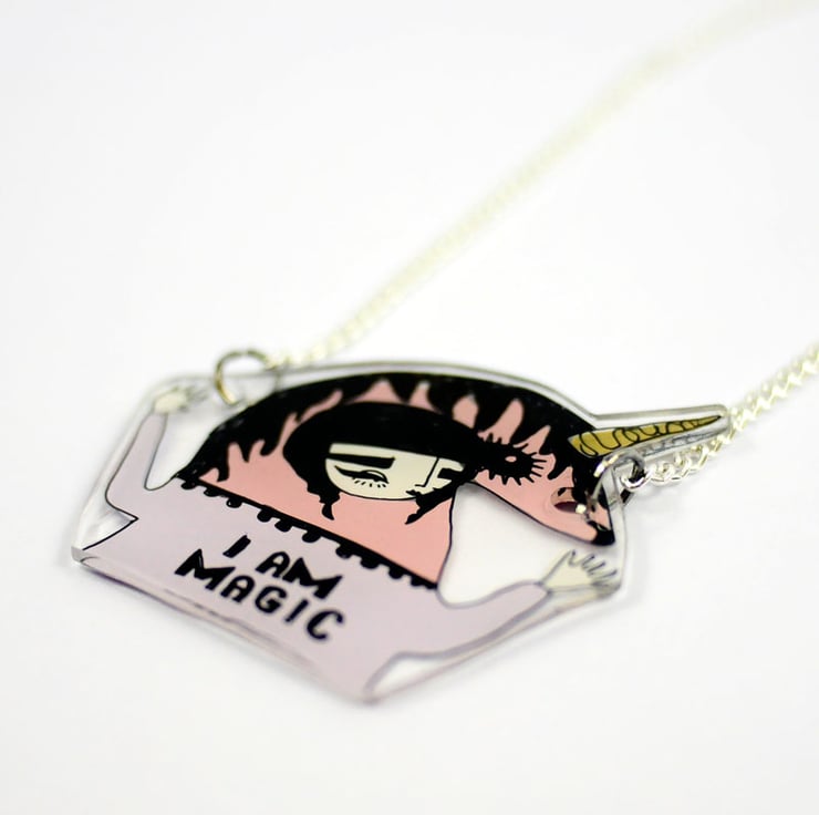 I AM MAGIC! Let everyone know you're magic too... this lovely magic girl pendant comes in pink, lilac and gold.