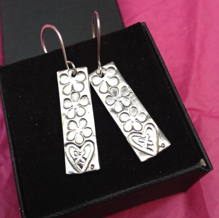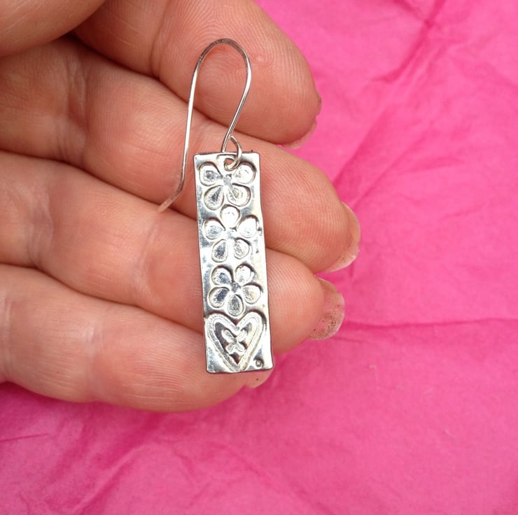 Pretty hearts and flowers dangle earrings.Long and skinny elegant and shiny.