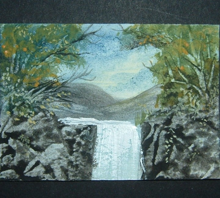 this beautiful watercolour waterfall landscape has been created using quality materials.