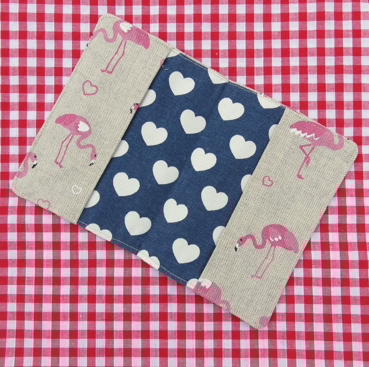 The fabric used is a medium weight cotton with a whimsical flamingo design.
