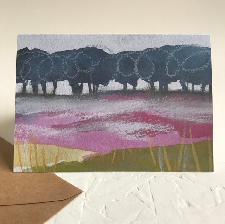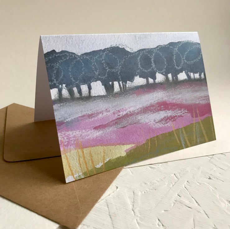 Featuring my original mixed media art, scanned an printed onto smooth white heavyweight 350gsm matt finish card. Served up with a brown C6 Kraft envelope.