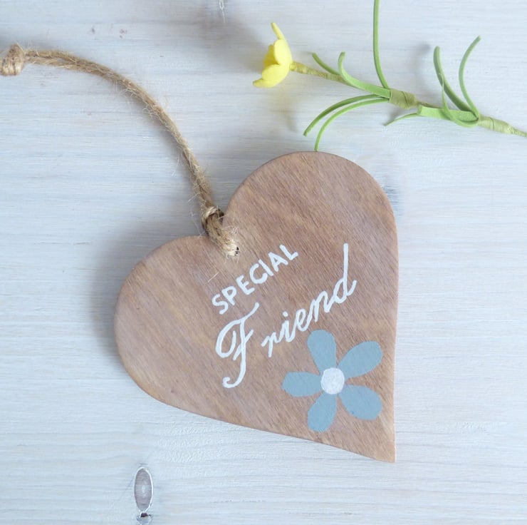 This is a lovely handmade greeting card and keepsake gift in one. The wording and flower has been hand painted onto a natural colour wooden heart and then seald with varnish for added protection.