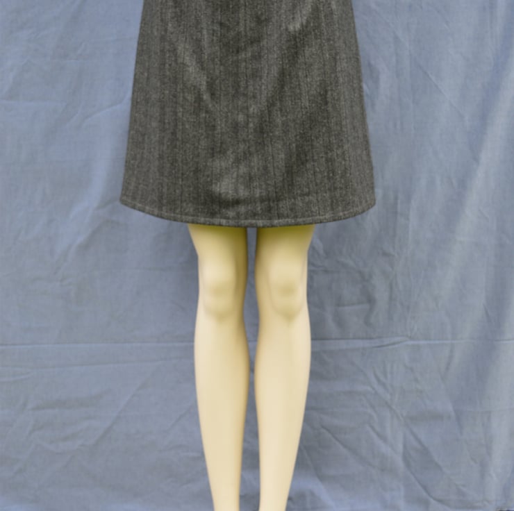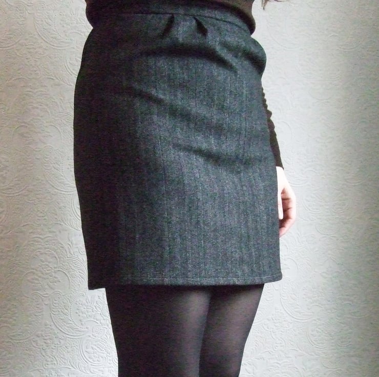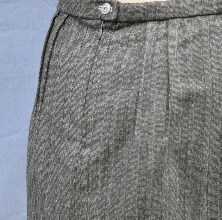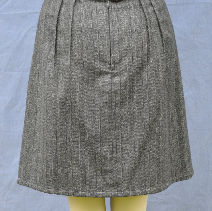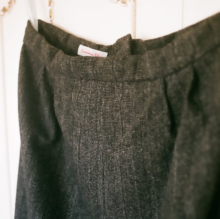 Handmade, fully lined skirt with back zipper, front pleats and inverted back dart detail. Made from sustainable materials - vintage trousers and reclaimed lining fabric.