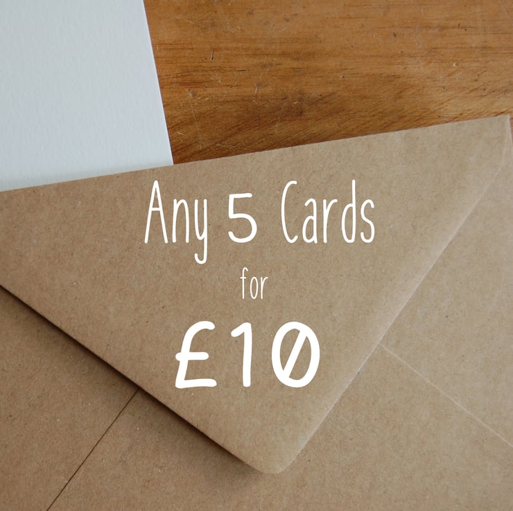 Best value greeting card multipack. Choose any combination of 5 cards from the designs currently listed in my Cards Collection. View photos of the individual cards available here: