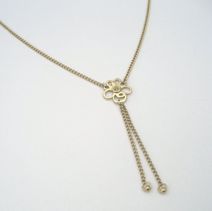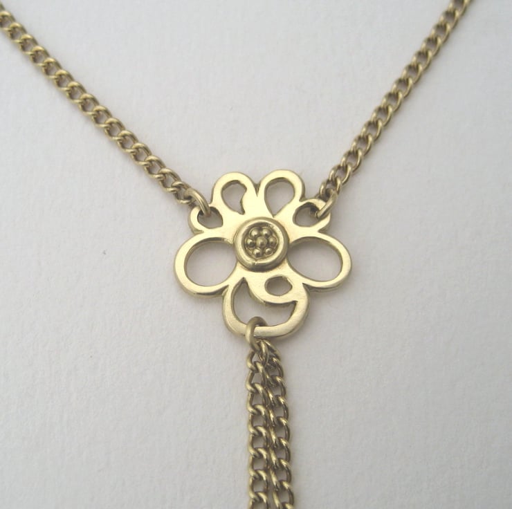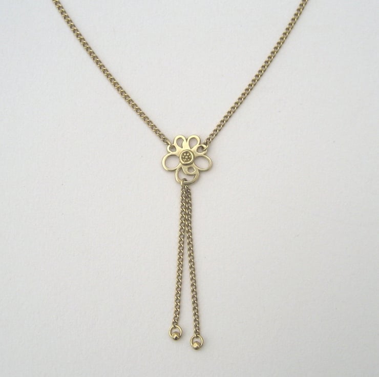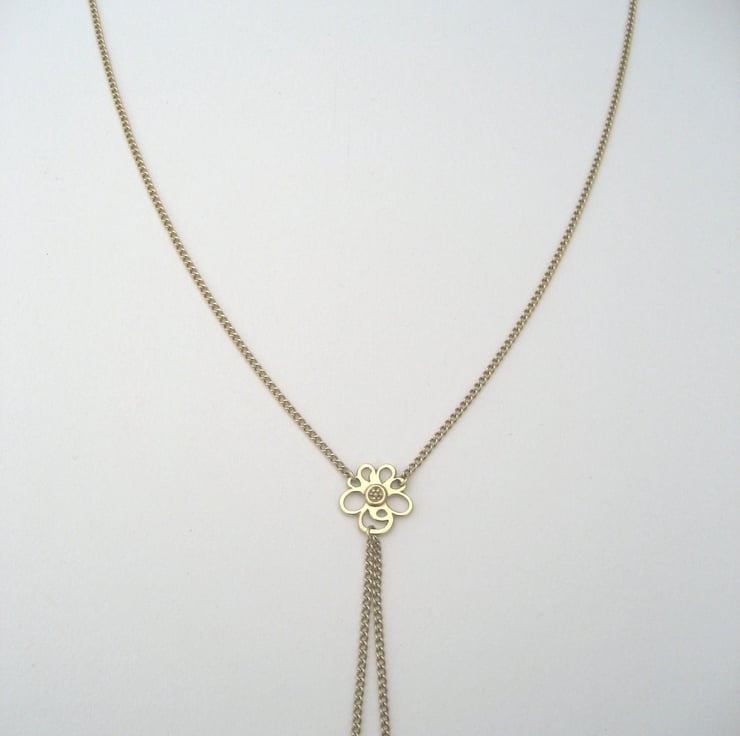 Handmade in my Yorkshire studio, this unique pendant is based on my Primrose inspired work and is made from solid 18ct Yellow Gold. The central flower has two 18ct Gold Curb Chains finished with Gold Beads that hang at the bottom.