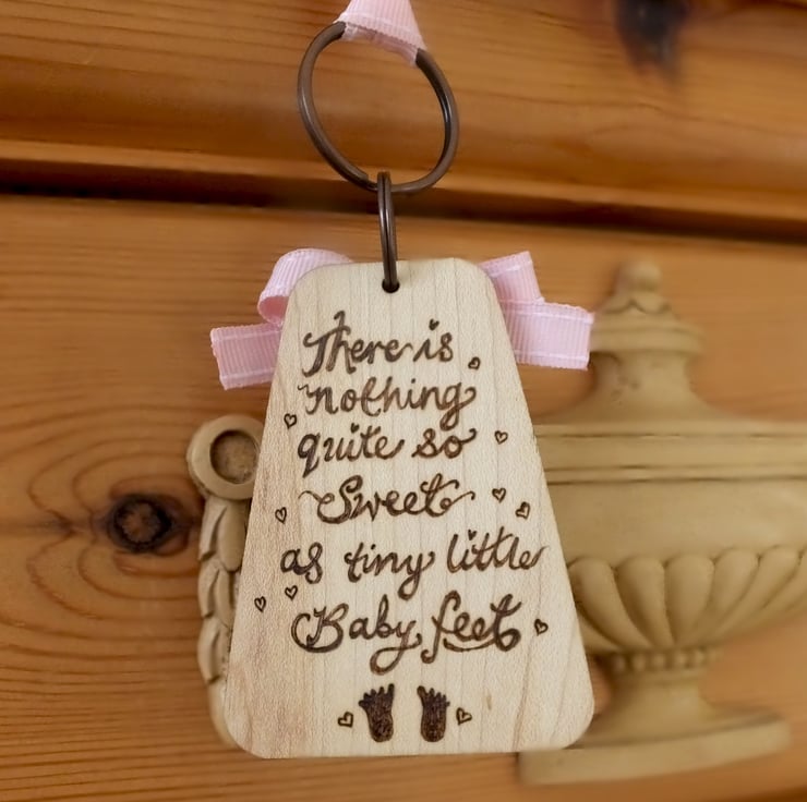 Here is a chunky triangular maple wood keyring or hanging plaque, with a cute verse on one side: