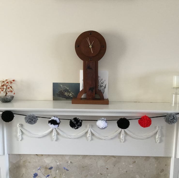 A pompom garland that is a little bit different, monochrome plus a statement colour.