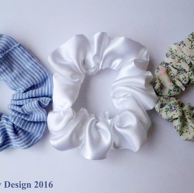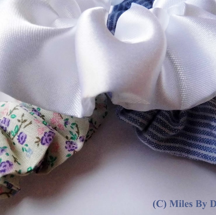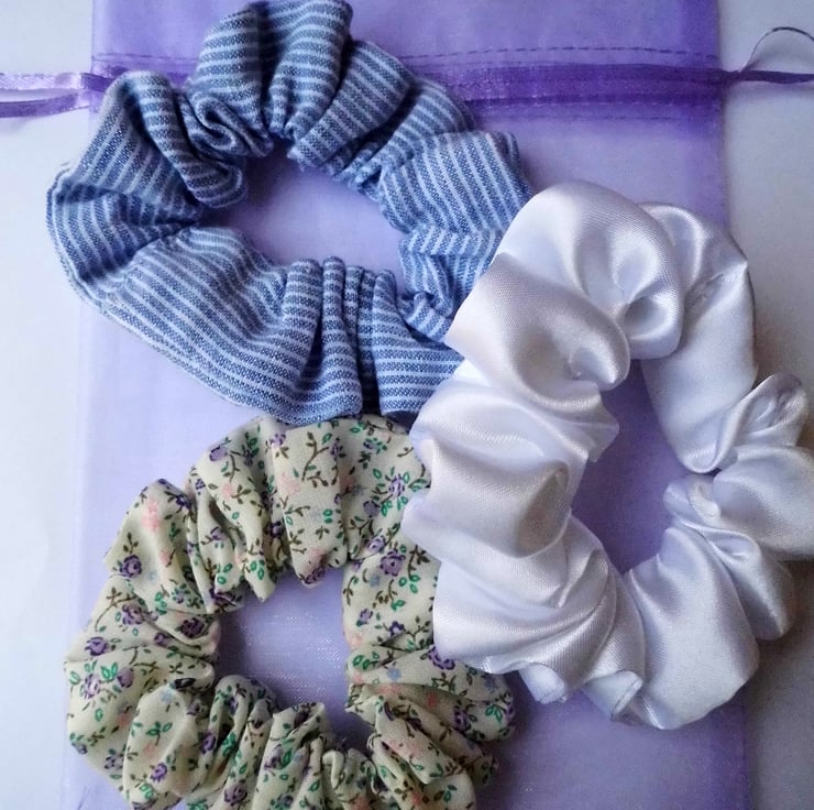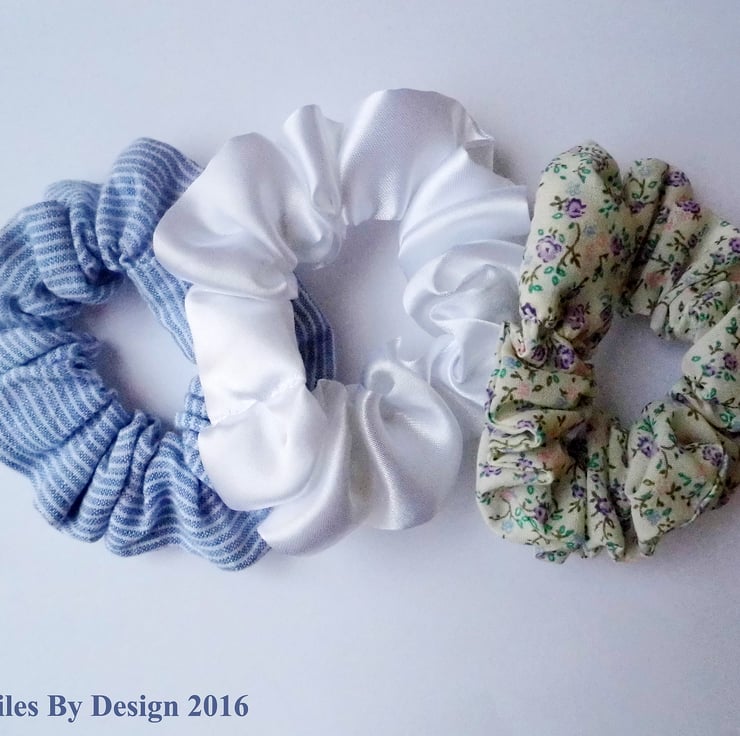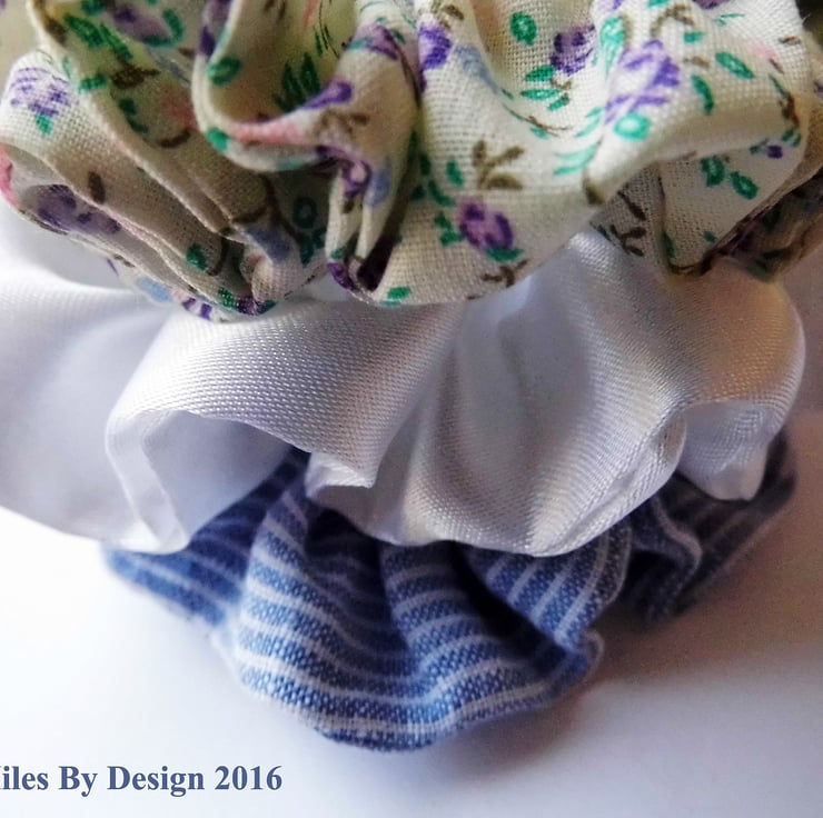 I had small amounts of lovely material but didn't know what to do with it. I was chatting to Natalie while she was doing her hair and when she put her hair in a scrunchie, I had a light-bulb moment.