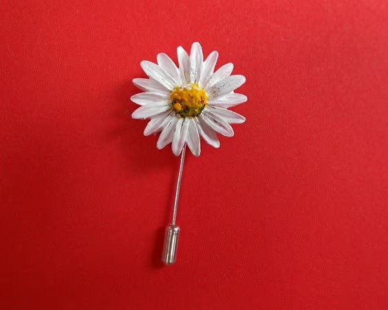 THE Single White LAWN DAISY STICK PIN- Lapel Flower Pin.