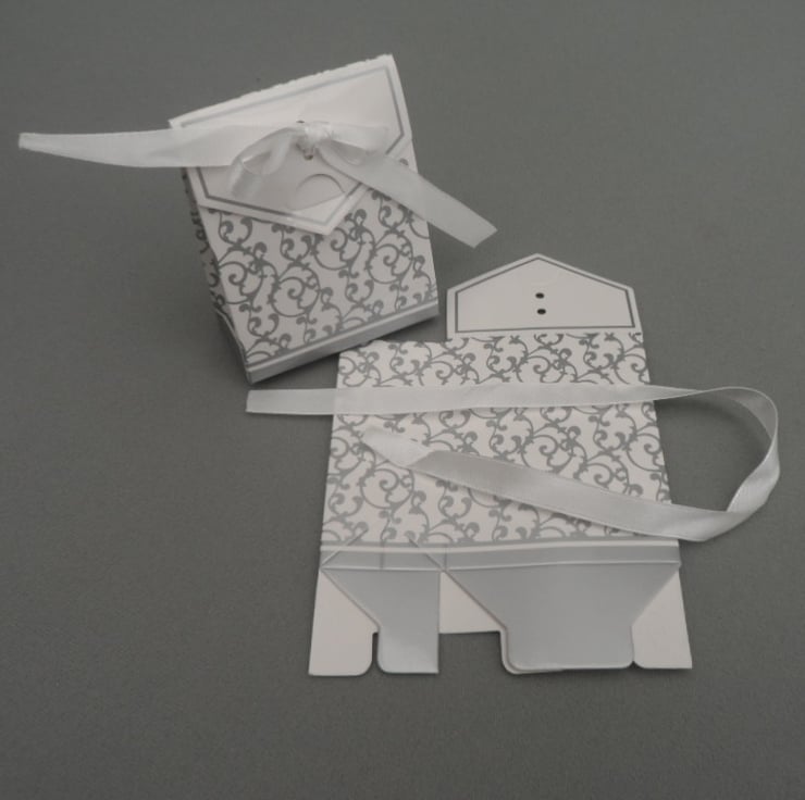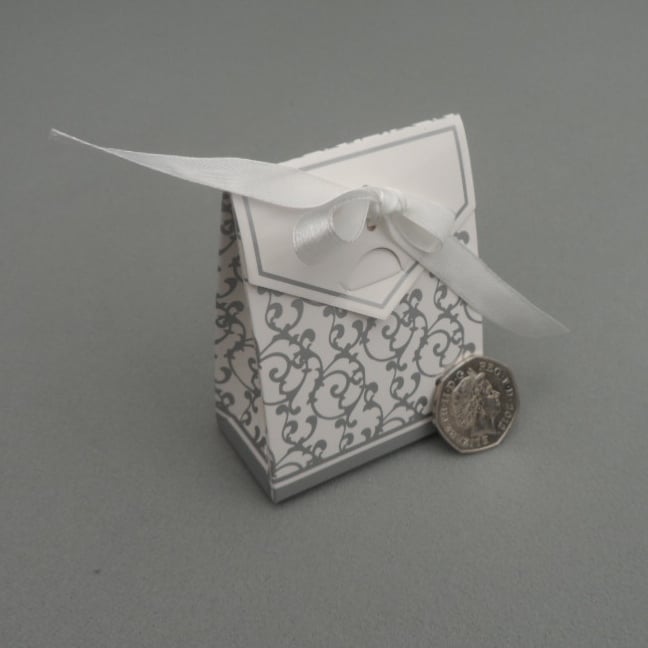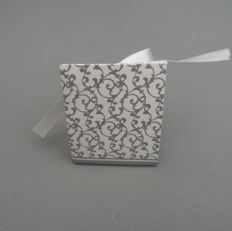 These adorable little gift boxes are suitable for packaging small craft items and jewellery to add that little something extra to your item. Made from good quality card with a silver print and a small white ribbon bow. These boxes come flat packed and can be assembled easily without the need for glue. They are also available in gold or mixed packs.