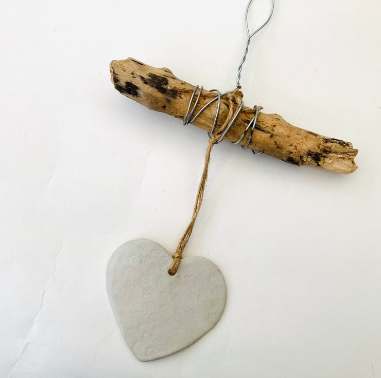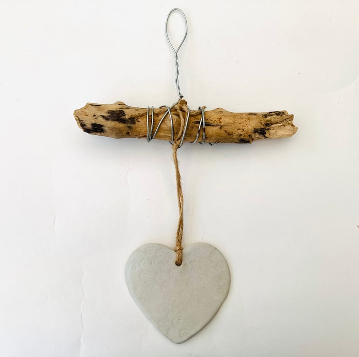 This pretty little Driftwood, Loveheart hanger is made using natural driftwood, clay, twine and wire to create a beautiful one off design.