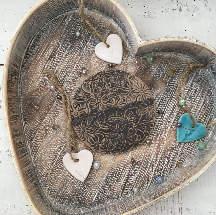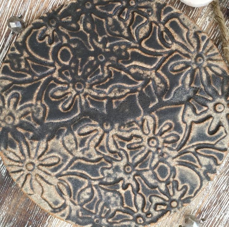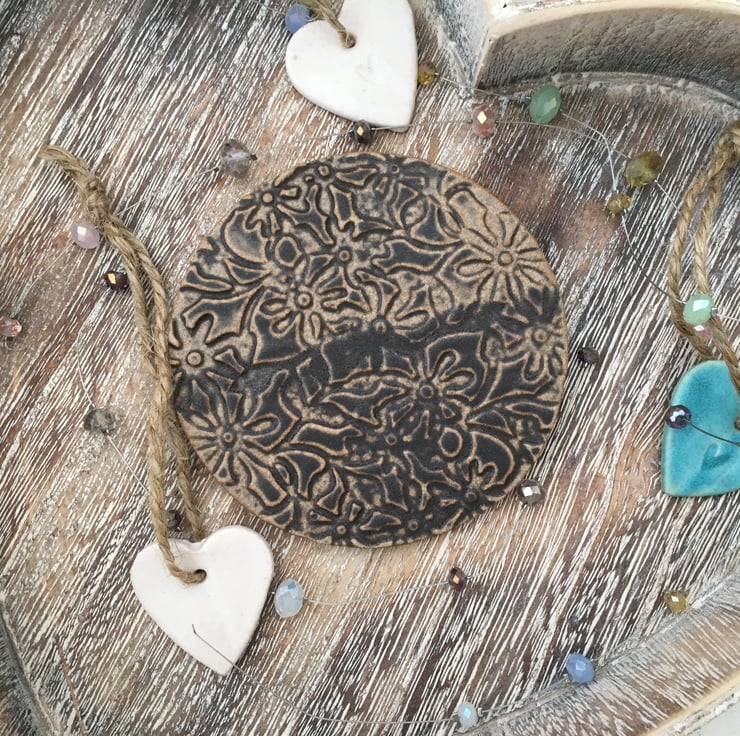 Ceramic teapot stand, large coaster, Hand made in Yorkshire.