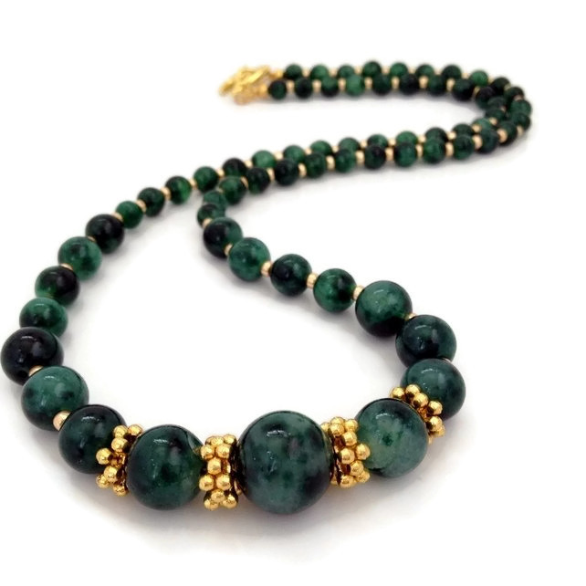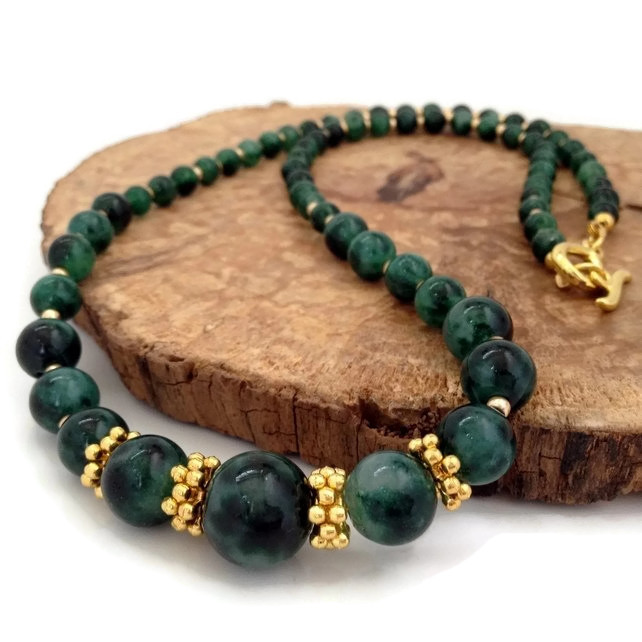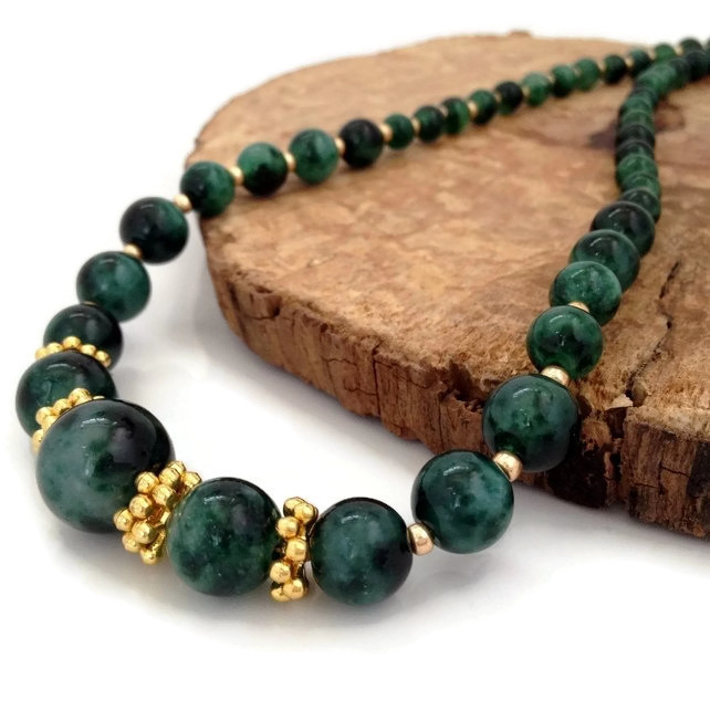 SALE - Was £20.00 Now £15.95. This necklace features Green Quartz round beads graduating in size from 5mm to 13mm. The green is not solid in colour and each bead contains varying shades.