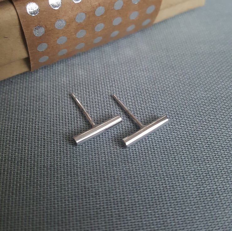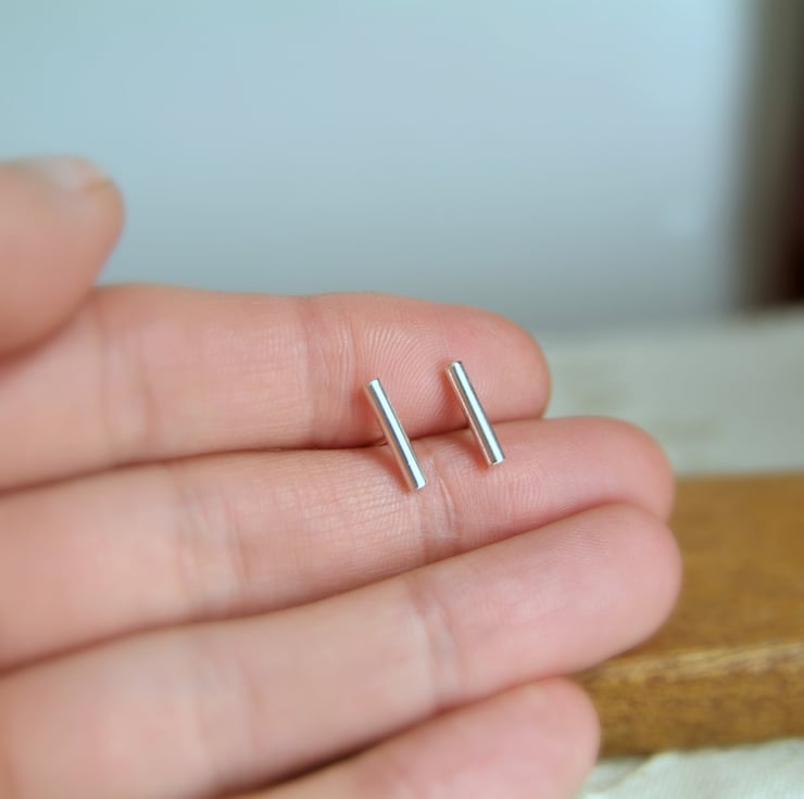 The cylindrical wire earrings measure approx 10mm long. They're solid, not tubes.