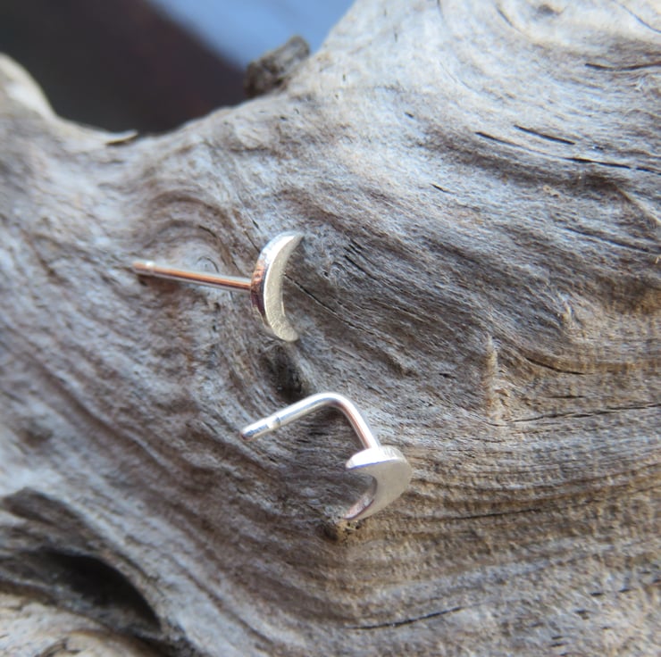 These sweet little studs have a fine silver crescent moon on a argentium silver post,