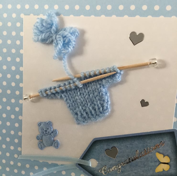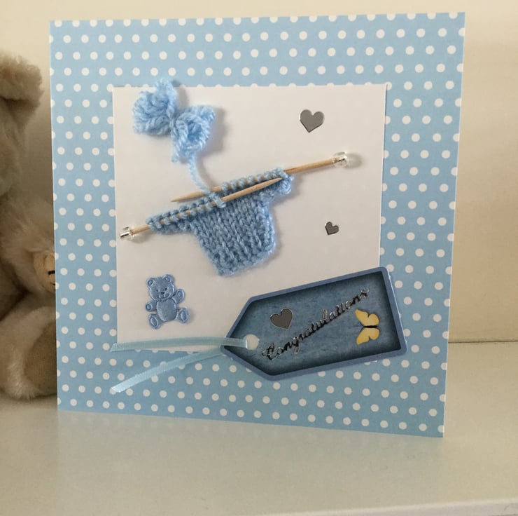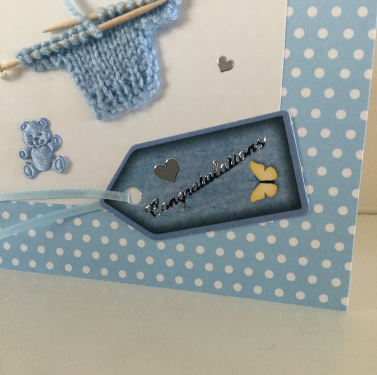 Finally finished with a sentiment in silver which reads 'Congratulations' silver hearts and a cute blue fabric teddy bear.