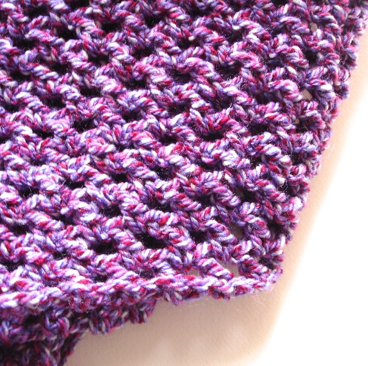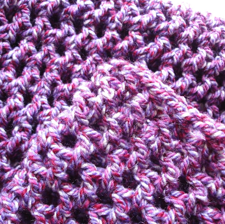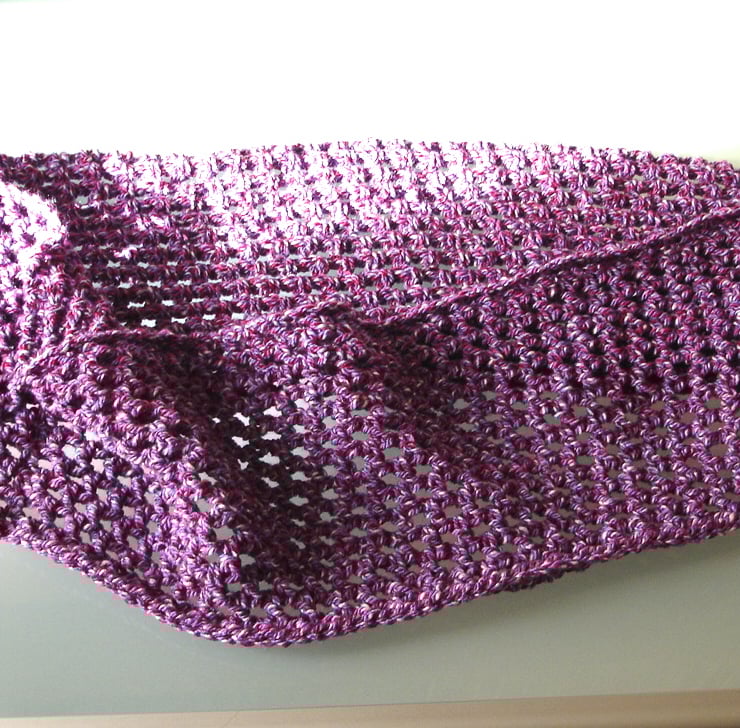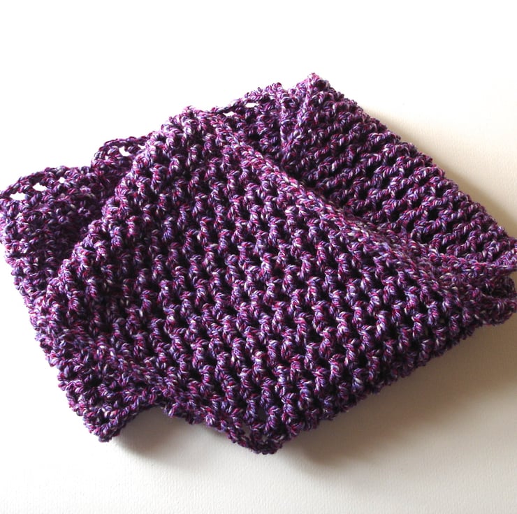 This gorgeous chunky purple marl crochet infinity scarf has been crocheted with my own fair hands. The cowl is my own design, using just the right stitches and tension to get a great finish. Great for any fashionista. Purple is such a great colour, its my personal favourite. This yarn was such a joy to work and the end result is beautiful, the perfect warm fashion accessory for cool early spring days.