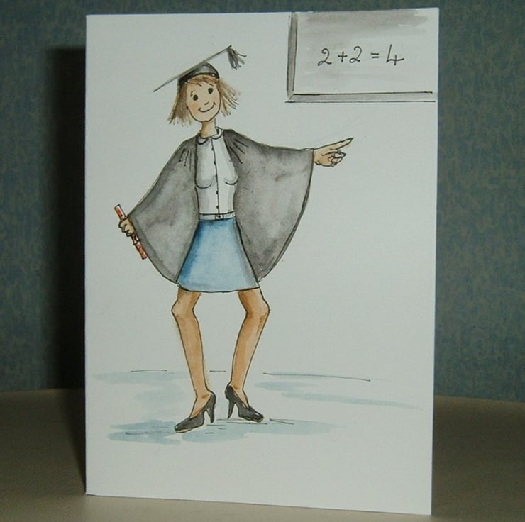 This is a hand drawn and hand painted Thank you card for a Teacher.
