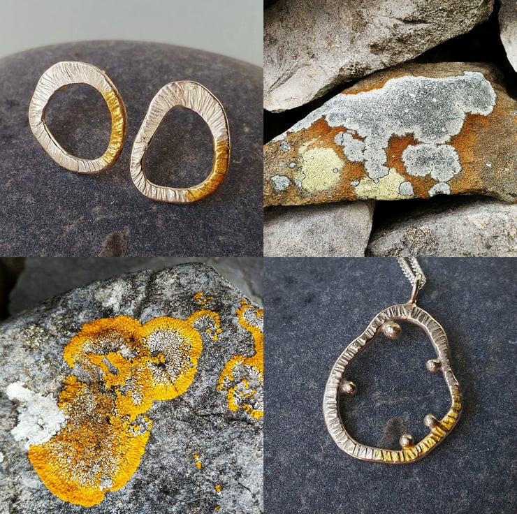 These are a beautiful pair of handmade sterling silver stud earrings that have been inspired by the colour and texture of Lichen.