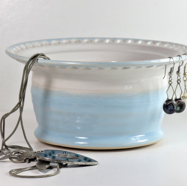 This Jewellery Bowl is a great attractive way to look after and keep safely organised dangly earrings, bracelets, bangles, beads, watches and rings.