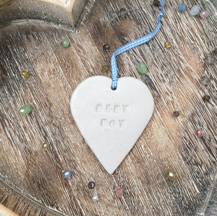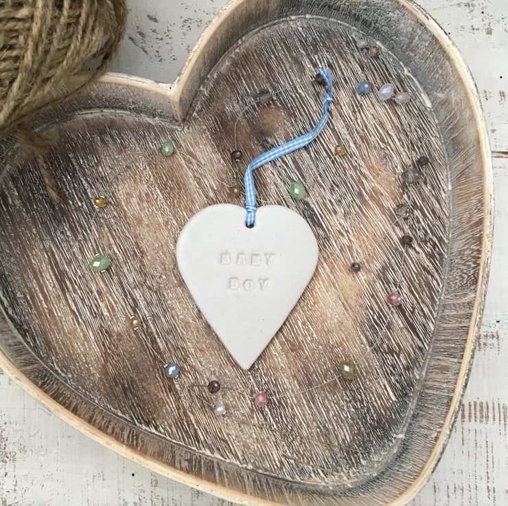 Loveheart hanger, baby boy, ceramic lovehearts, gift idea, home decor