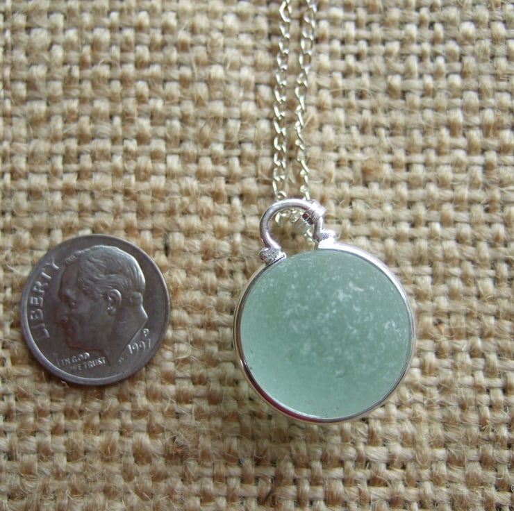 Purist sea glass marble necklace... beach marble sphere... sea glass set in silver plated bezel setting on silver plated chain in length of your choice ( or optional 18" sterling silver chain). The marble has not been channel drilled, it is set in the silver wrapping without having been altered. Marble is between 16-18mm diameter. Codd marbles are approx 80-100 years old.