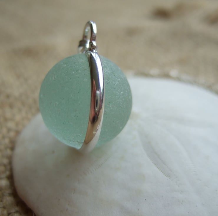 Sea glass marble found on the rough coasts of Scotland. This marble has not been altered in any way, there is no glue or channel drilling involved in this piece of jewellery.