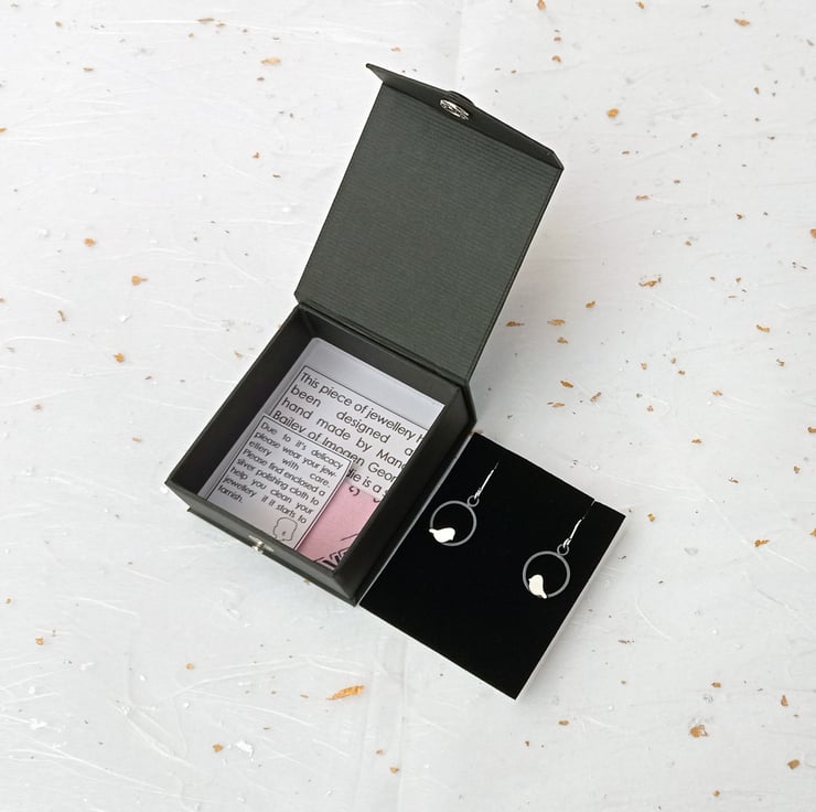 The earrings will arrive in a black jewellery box, complete with simple care instructions and a small square of silver polish.