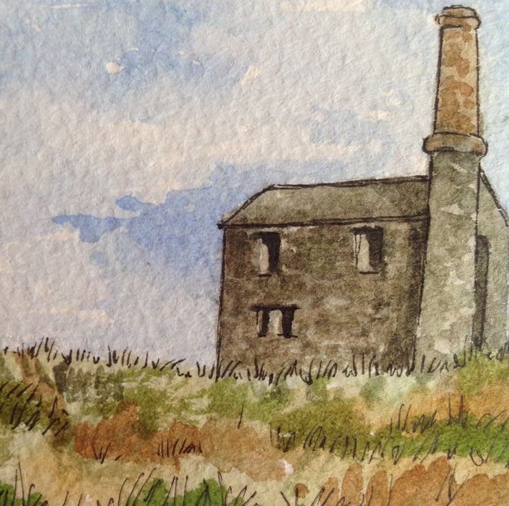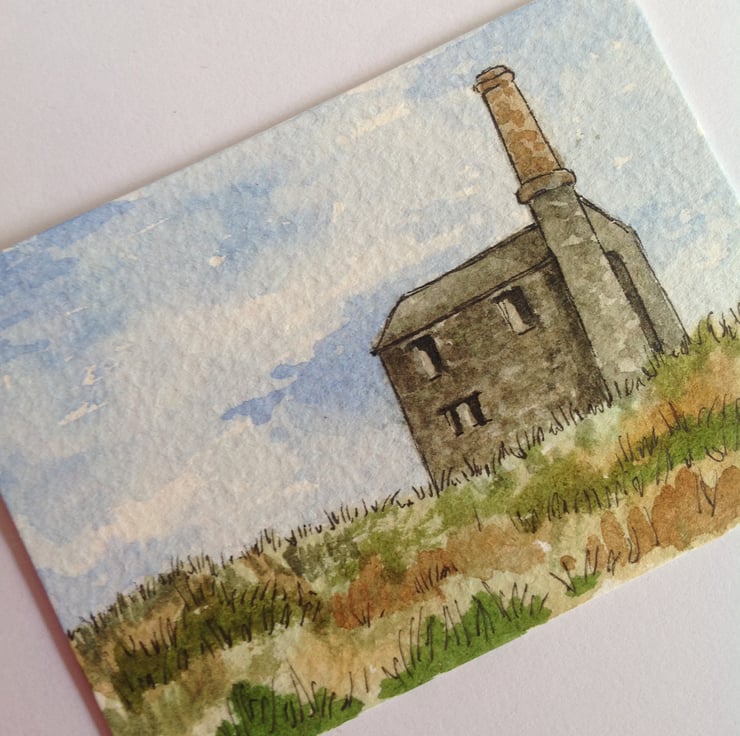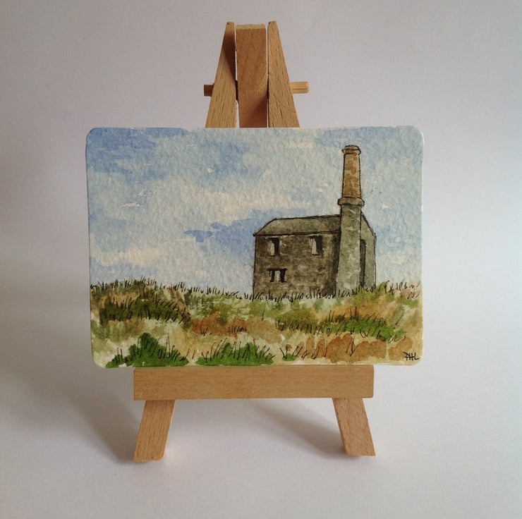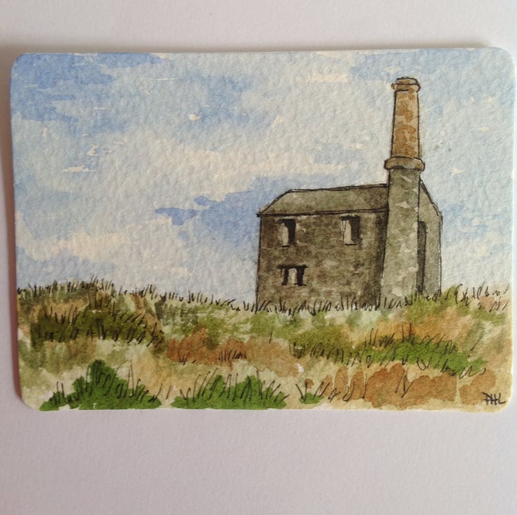 This ACEO is an original, hand painted watercolour of an old tin mine in Cornwall. It measures 2.5 x 3.5 inches (63 x 89mm).
