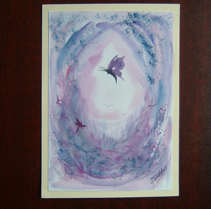The painting measures approximately 4.5" x 6.5" and is mounted onto 7x5" cream card.