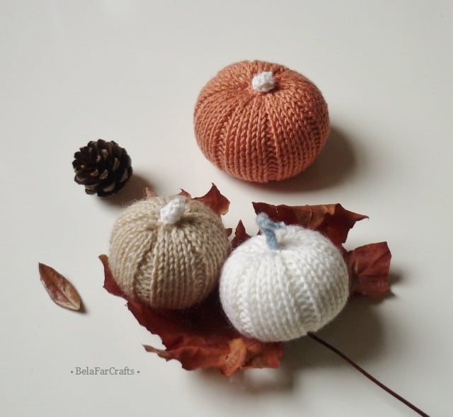 These knitted pumpkins in subtle colours are ideal for those who like pumpkins all year round! They will look lovely placed on your shelves and work desk or used as decorations for a baby shower.