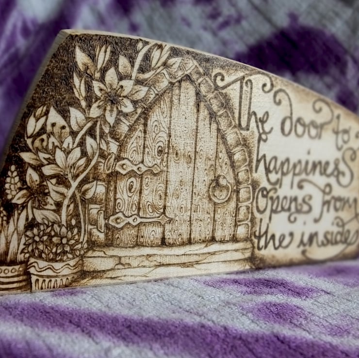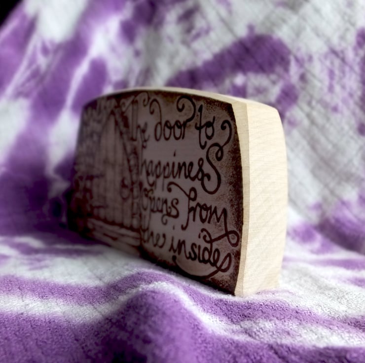 This listing is for a wooden freestanding plaque, measuring approx 13cm long and 6.5cm high at it's highest point. It is approx 2cm deep.