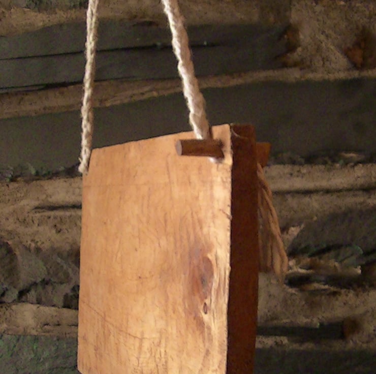 The two oak hanging pegs are oak and the suspension is plaited raw cotton.