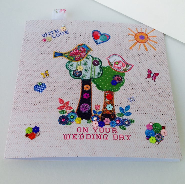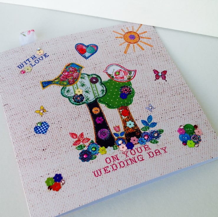 The design is of Bright and Beautiful Coloured images of applique work flowers,butterflies,bunting and birds.