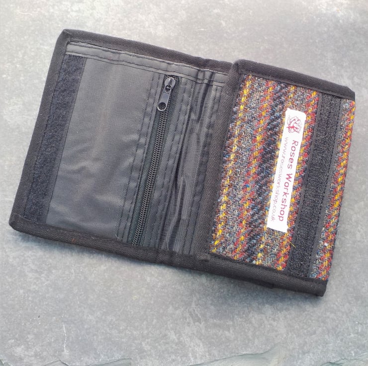 Great gift for those difficult to buy for men. I have chosen Harris tweed fabric in a red and grey striped design for this useful wallet. The inside is nylon with lots of pockets for notes and cards. There is a small zipped pocket - please note this is for a small item such as a car-park token, and is not intended to hold large quantities of coins.