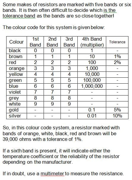 Resistors supplied in kits from Irby Electronics use the 3 band colour code. Other resistors use the 4 band colour code. Save time searching for a multimeter to measure the resistance of a resistor. Keep this A6 laminated card close by for reference. It is printed on ivory-coloured paper and has the 3 band colour code on one side and the 4 band colour code on the other side.
