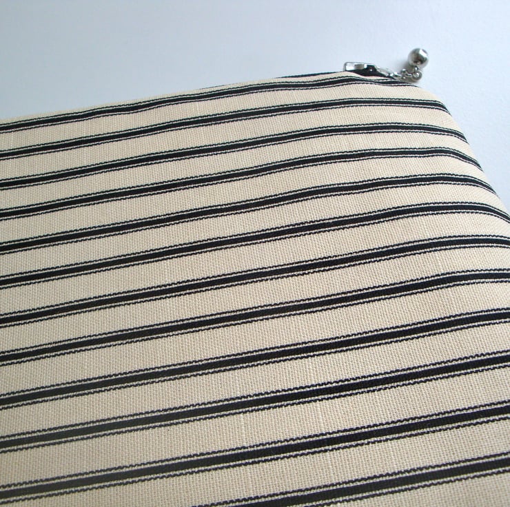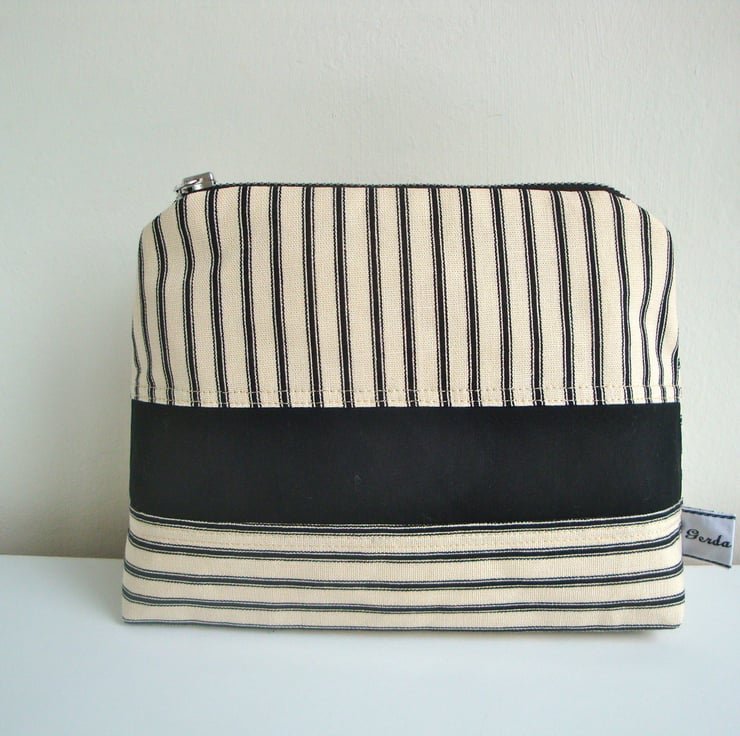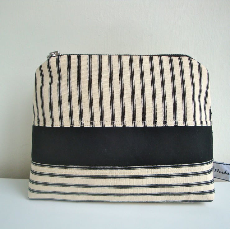 The lovely stripy ticking cotton canvas , ideal for a manly Wash bag ...