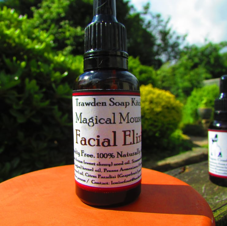 Magical Mouse's Facial Elixir is a wonderful facial serum suitable for all skin types. It is vegan and cruelty free. Net Contents: 30 ml. You will receive one bottle (unless you order more)