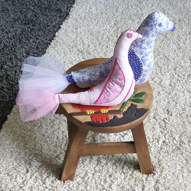 Sophia the bird cushion has a French cotton flower design fabric for her wings.