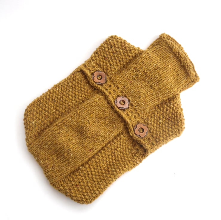 This digital knitting pattern (PDF) guides you step-by-step to create a unique and eye-catching hot water bottle cover featuring BIG statement cable knots on the front—perfect for adding warmth and character to your winter evenings or gifting something truly special.