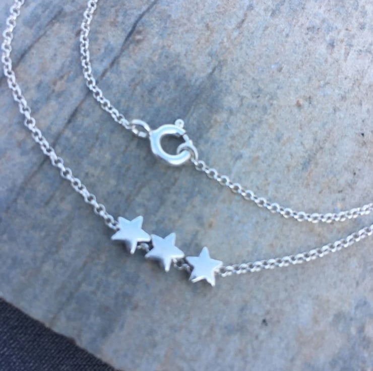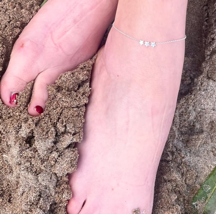 Sterling Silver Star Anklet, 9.5 inches, (I also have this design listed in the following sizes in my folksy shop 10.5 inches, 11.5 inches, 12.5 inches, at a small extra charge for the larger sizes but please order there if you want a larger size.) This has 3 stars which do move. I can make multiples of this piece and do offer 15% off 3 or more so please do ask. Matching bracelet and earrings are also available.