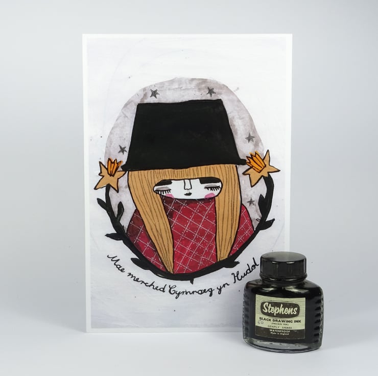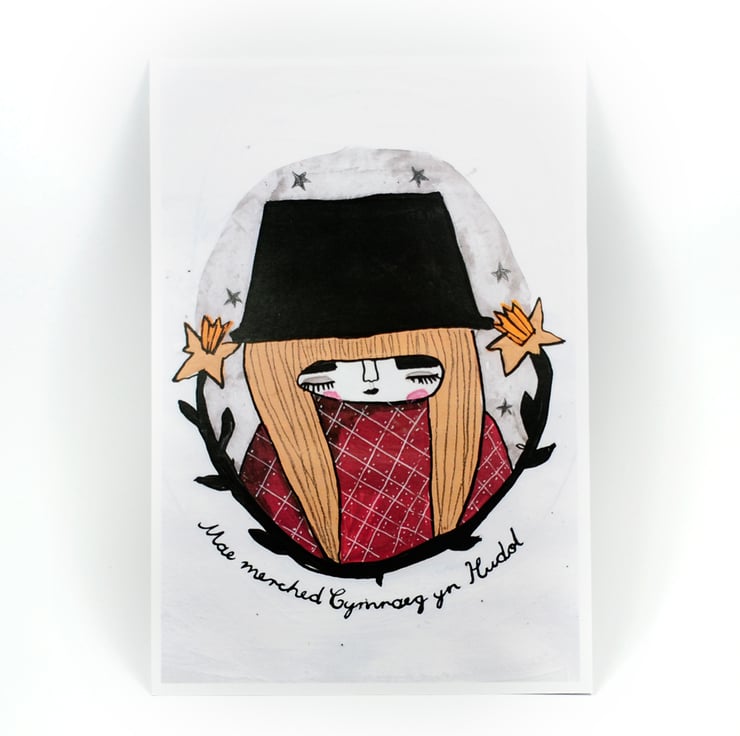 This Poster print features a very cute little Welsh girl surrounded by daffodils and stars. She is also available in a larger size.