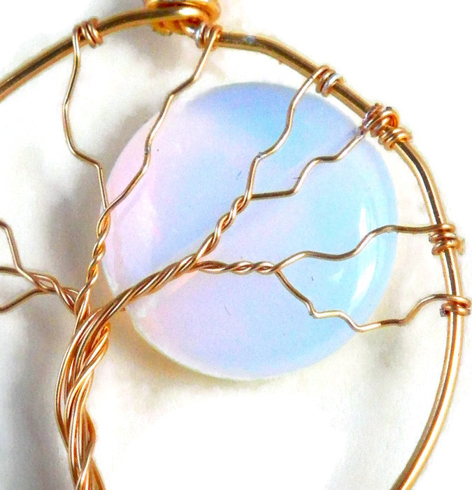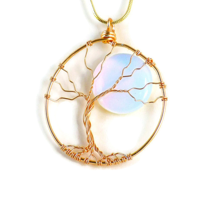This handmade Tree of Life necklace is a beautiful twist on a classic design, loved by many. This unique wire wrapped tree pendant with a dreamy opalite moon is a lovely gift for her.