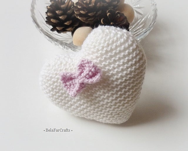 White Bow Heart : 9.5cm at widest point (4in)