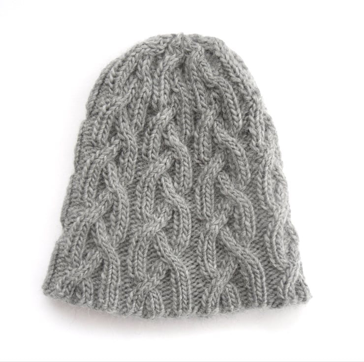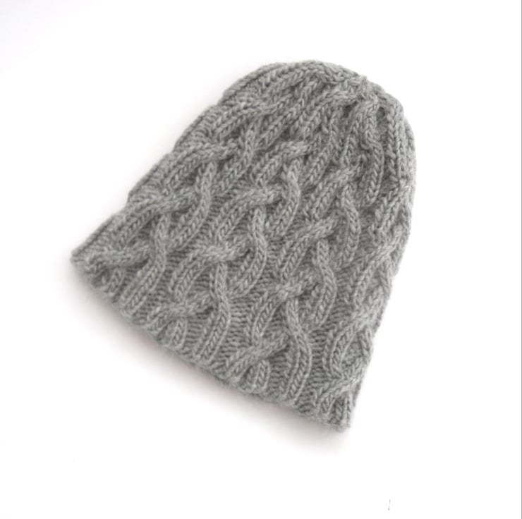Grey cabled beanie hat , Hand knitted in a chunky grey wool 80% / mohair 20% mix super soft yarn. Great winter accessory.