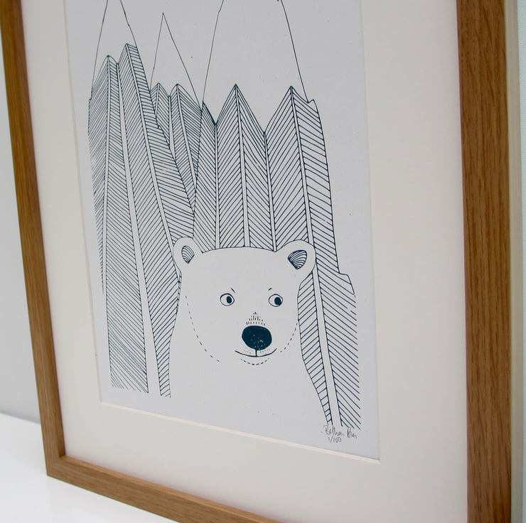 Art print 'Polar bear with mountains' Screen print SALE NOW HALF PRICE
