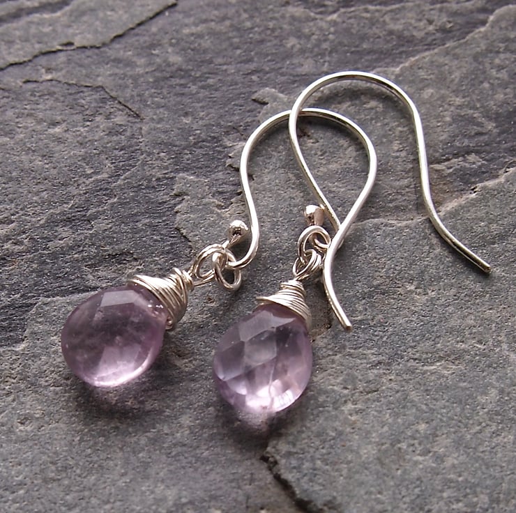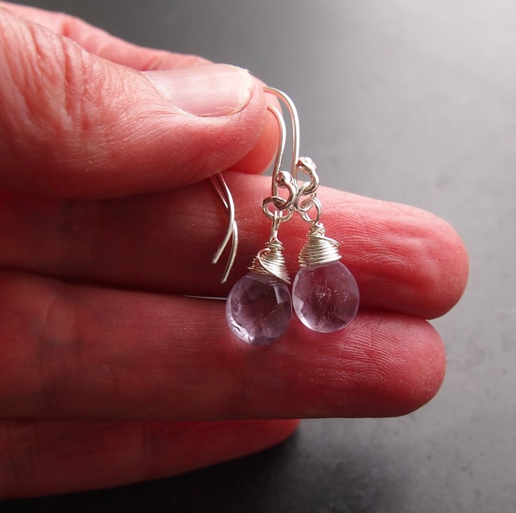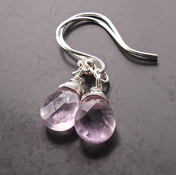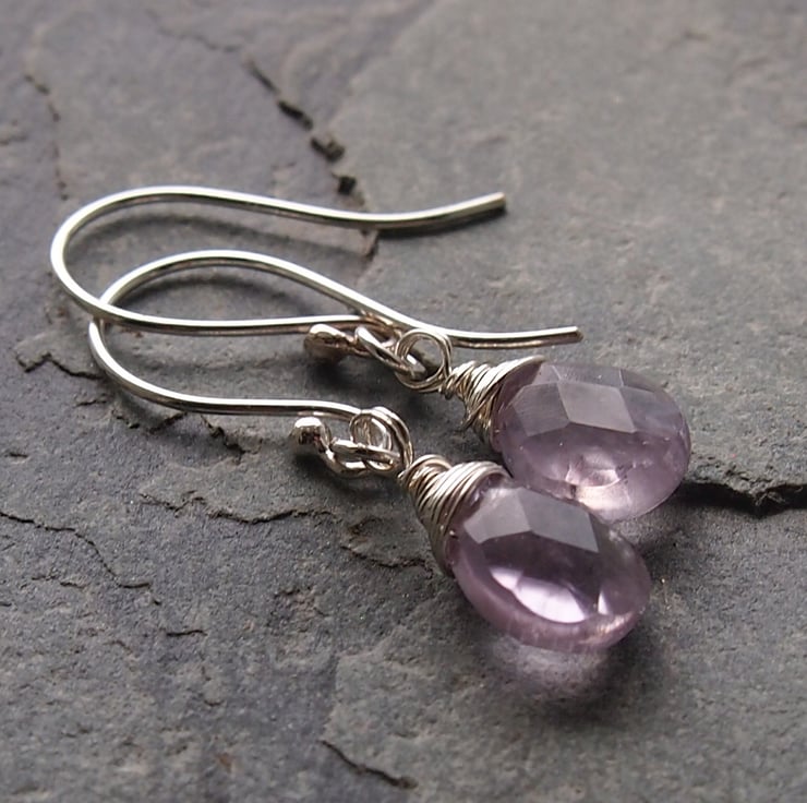 Very pale frosty lilac faceted drops are wrapped in sterling silver and simply hung from our own hand made ear wires.