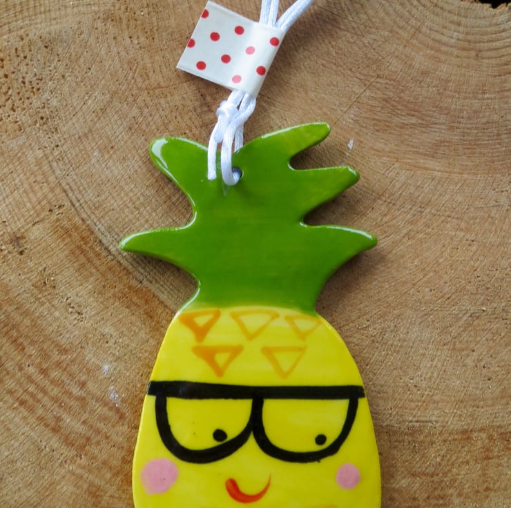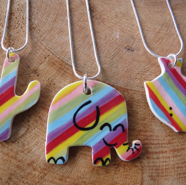 Handmade Ceramic Elephant Pendant Necklace and Pineapple Decoration